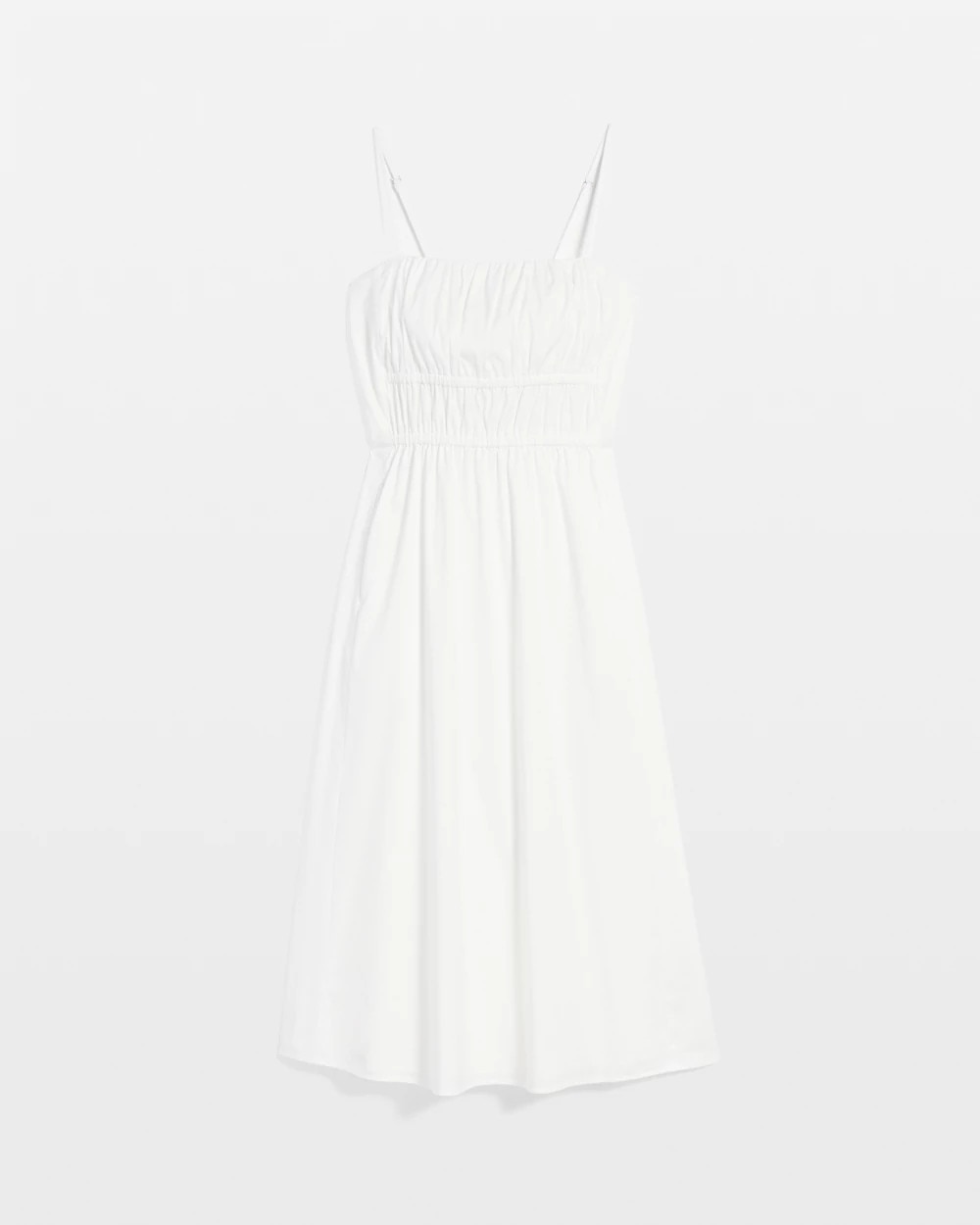We designed this fit and flare midi dress from cotton-blend poplin and added smocking at the back and an adjustable tie. An easy summer dress for any occasion.