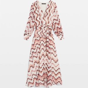 Crafted from chiffon, this maxi dress has slit sleeves with 3-button cuffs, cinching details at the waist and elastic in back. A self-fabric sash helps define your waistline. This chic yet easy look is one you will reach for to take you from the office to dinner.