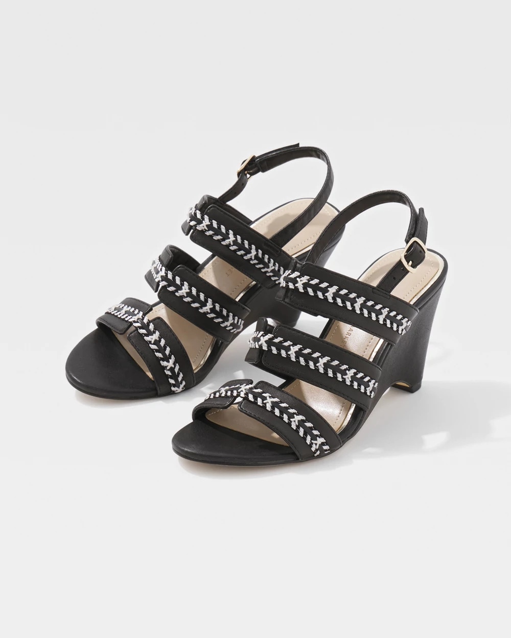 Reach for these wedge sandals when you’re heading to a garden wedding, barbecue or just because they’re cool. The contrasting whipstitch trim and shiny gold buckle elevate these sandals that also pair with a matching whipstitch belt.