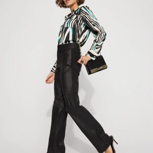 You’ll love this utility shirt with a relaxed fit, yet made from satin for an elevated look. Designed with faux front pockets + button closure.