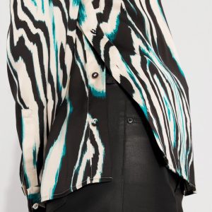 You’ll love this utility shirt with a relaxed fit, yet made from satin for an elevated look. Designed with faux front pockets + button closure.