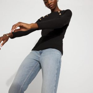 A variegated rib pattern and soft gold buttons elevate this timeless Henley. Wear it with your favorite jeans.