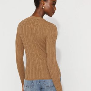 A variegated rib pattern, knit from a Tencel, wool, and silk yarn, elevates this timeless Henley. Wear it with your favorite jeans.