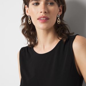 Made from a refined stretch crepe fabric, this fashion tee is gathered at the waist with ring hardware for an elevated look. A dressy tank to layer under a blazer for the office.