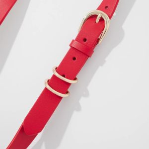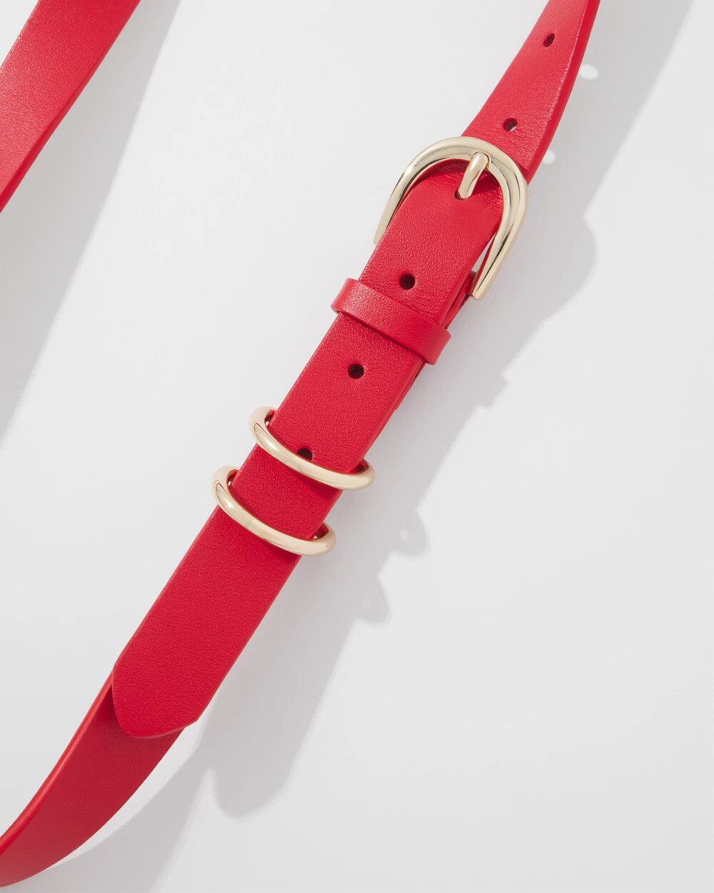 With an elevated buckle and two hardware loops, this twist on a traditional pant belt will add some excitement to your closet. Wear the accessory with your favorite pair of denim or with a dress to cinch in the waist.