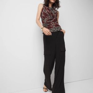 Asymmetric ruching down the front and back give this mesh tank top a fitted + flattering look. It is also lined for coverage.