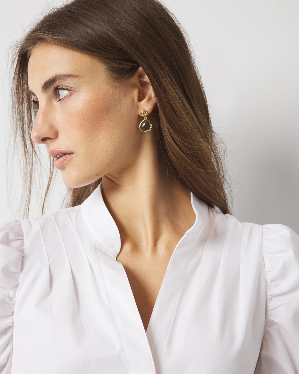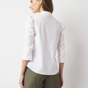We’ve taken a timeless cotton poplin shirt and re-imagined it as a feminine blouse. Designed with ruched sleeves and Y neckline, it’s a great look to pair with your favorite work pants.