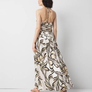 Satin Floral Halter Maxi Dress