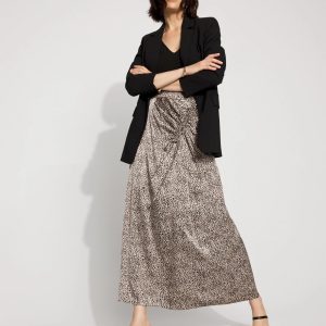 We’ve updated the classic satin maxi skirt with a drawstring cord at one side of the waist, so you can adjust the shirring to suit your style. The leopard print is a modern neutral that goes with anything, while always being chic + feminine. Dress it up with heels, boots or dress it down with flats or sneakers.