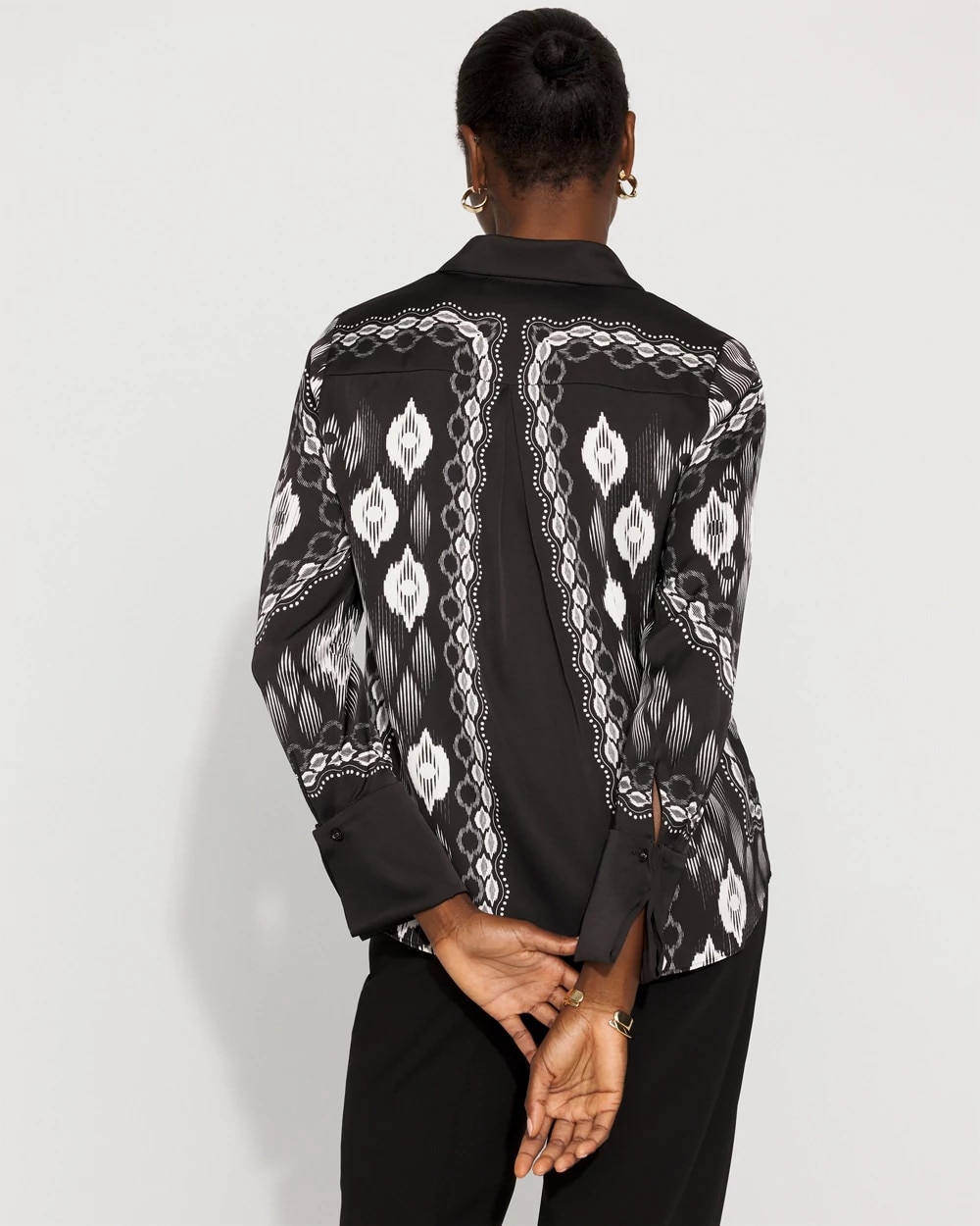 A tuxedo version of our bestselling Soft Shirt made from sleek satin and designed with French cuffs. We’ve tested it under jackets and blazers and it’s a perfect pairing. Hidden button closure and button cuffs.