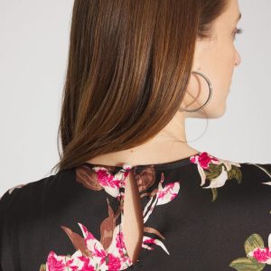This satin printed shell has a fabric twist at the neckline which adds a touch of flair under a blazer or on its own. A simple piece that will enhance your office wear.