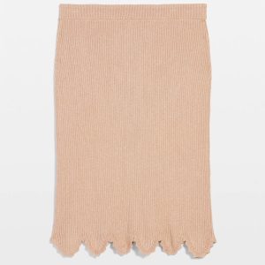 Spun from a metallic yarn for a chic shimmer, this skirt has a scalloped hem, giving it a feminine + romantic look. Pair with its matching Scalloped Shimmer Sweater.