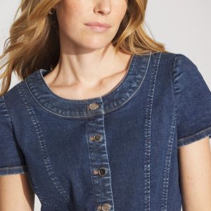 Hammered silver buttons elevate the front of this scoop neck, stretchy denim jacket. And a peplum hem slightly flares at the waist to give you an hourglass shape. For a chic denim-on-denim look pair this jacket with our matching Extra High-Rise Wide-Leg Trouser Jean