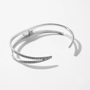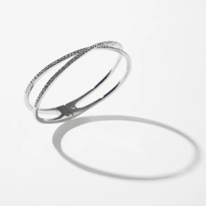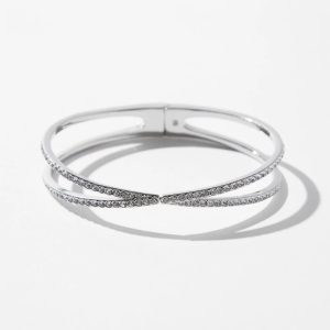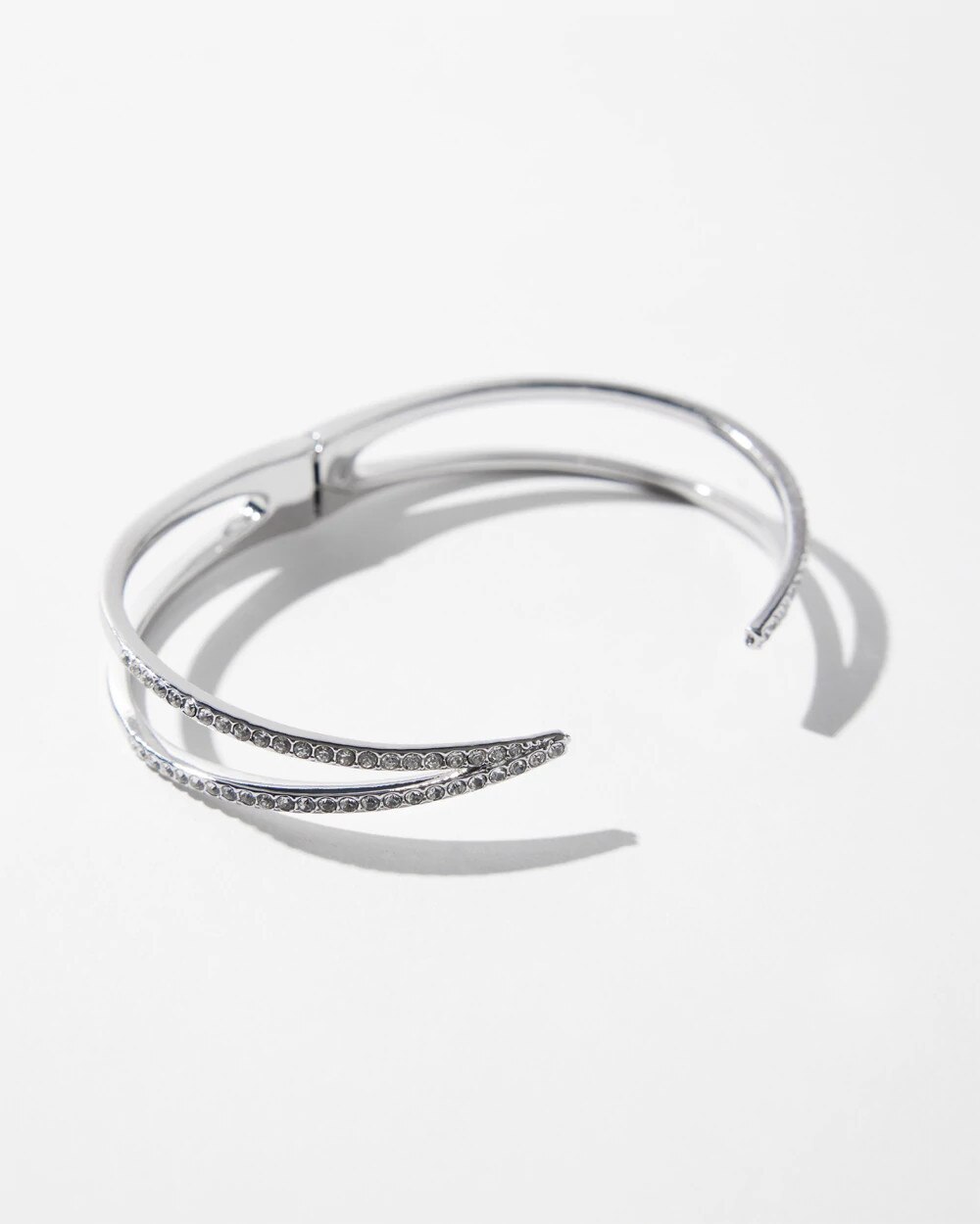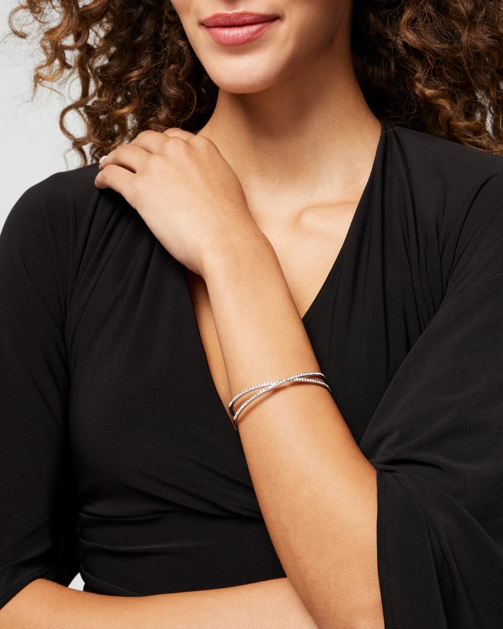Let your arm do all the talking in the Silver Criss-Cross Hinge Bracelet. With a graceful cross in the center, the bracelet can work for everyday or weddings.
