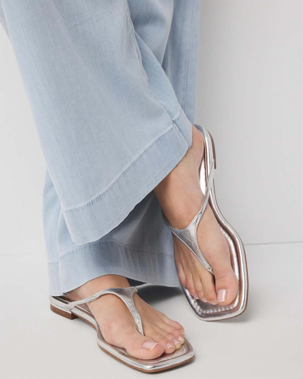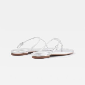 Glam up your summer wardrobe with this silver metallic flat sandal. An easy everyday slide that will work with all your dresses, shorts and jeans.