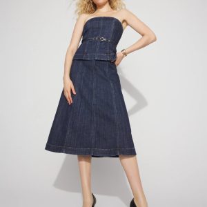 Strapless Denim Midi Dress