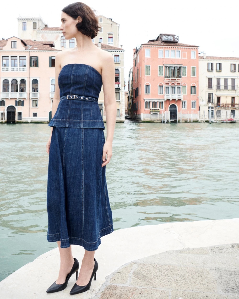 Strapless Denim Midi Dress