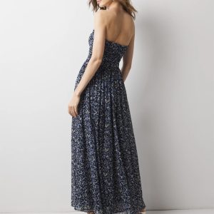 Our mesh fabrics are soft, cool, and fully lined. The ruching on this strapless maxi dress create an ultra-feminine silhouette that will take you anywhere this season.