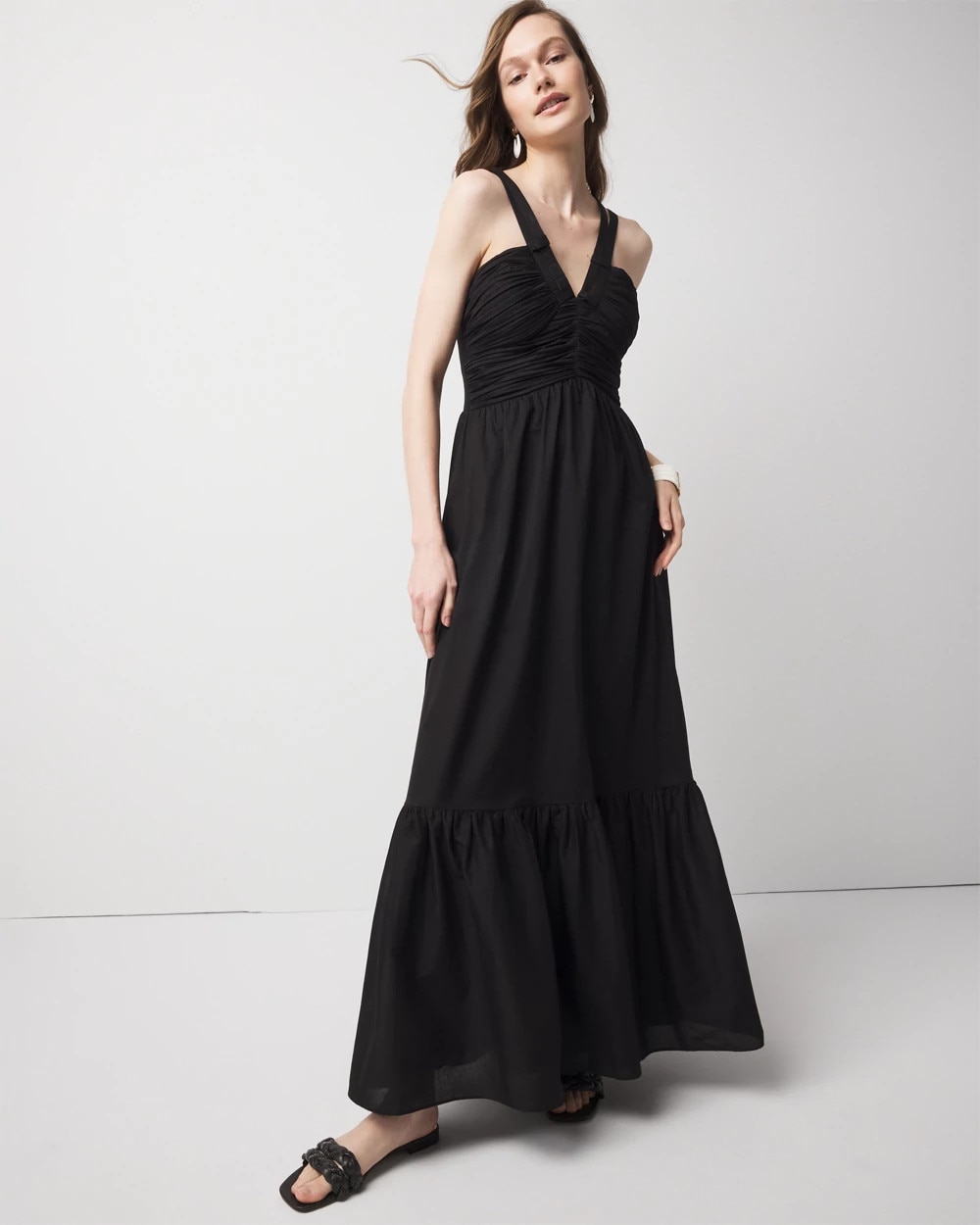 Made from 100% cotton voile, this maxi dress is lightweight and airy. Designed with pleating at the bust and a double-strap halter neckline that crisscrosses in the back, it’s an elevated look for special occasions or just because you’re feeling it.