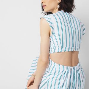 Made from 100% cotton, this classic striped sundress has cutouts at the waist to reveal a sliver of skin at the side and in the back. Designed with back smocking for an easy + comfortable fit. Pair with your favorite sandals.