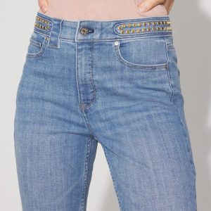 Studded Detail High-Rise Slim Cropped Jean