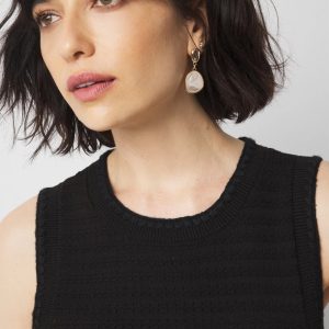 This lightweight knit dress is an easy pull-on style with contrasting braid trim, ruching on wearer’s left and a side slit on the right. A fitted, sexy style that will work with strappy heels or take it down a notch with flat sandals or sneakers.