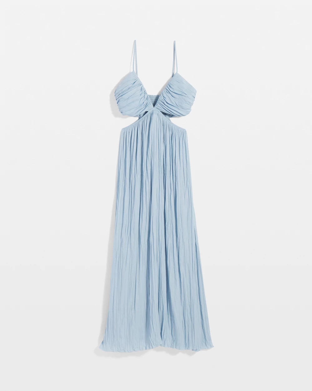 Heat up your social calendar with this sexy dress designed with waist cutouts and a plunging neckline. Made from a washed satin fabric with a slightly pleated look that softens the look, it’s a feminine style that ensures you’ll make an entrance.