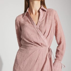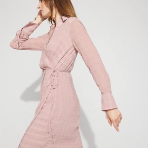 This chiffon shirt dress is an elevated look that’s perfect for the office. The cuffs have self-ties that can be undone to create a flounce effect, and the wrap waist has a self-tie along with a classic shirt button closure.