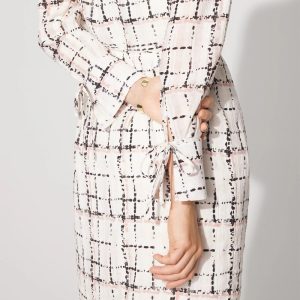 This chiffon shirt dress is an elevated look that’s perfect for the office. The cuffs have self-ties that can be undone to create a flounce effect, and the wrap waist has a self-tie along with a classic shirt button closure.