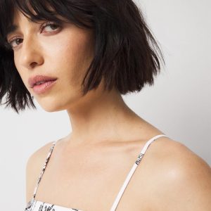 Add a note of formality to your look this spring with our tie-waist bustier. Cut from a stunning black and white floral print, it has a contrasting tie belt that wraps around your waist and cinches at the back. The bustier has boning for structure and smocking in the back for ease. Pair with denim.