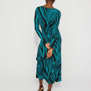 A functional side tie and ruching shapes this long-sleeve midi dress that will take you from desk to dinner.