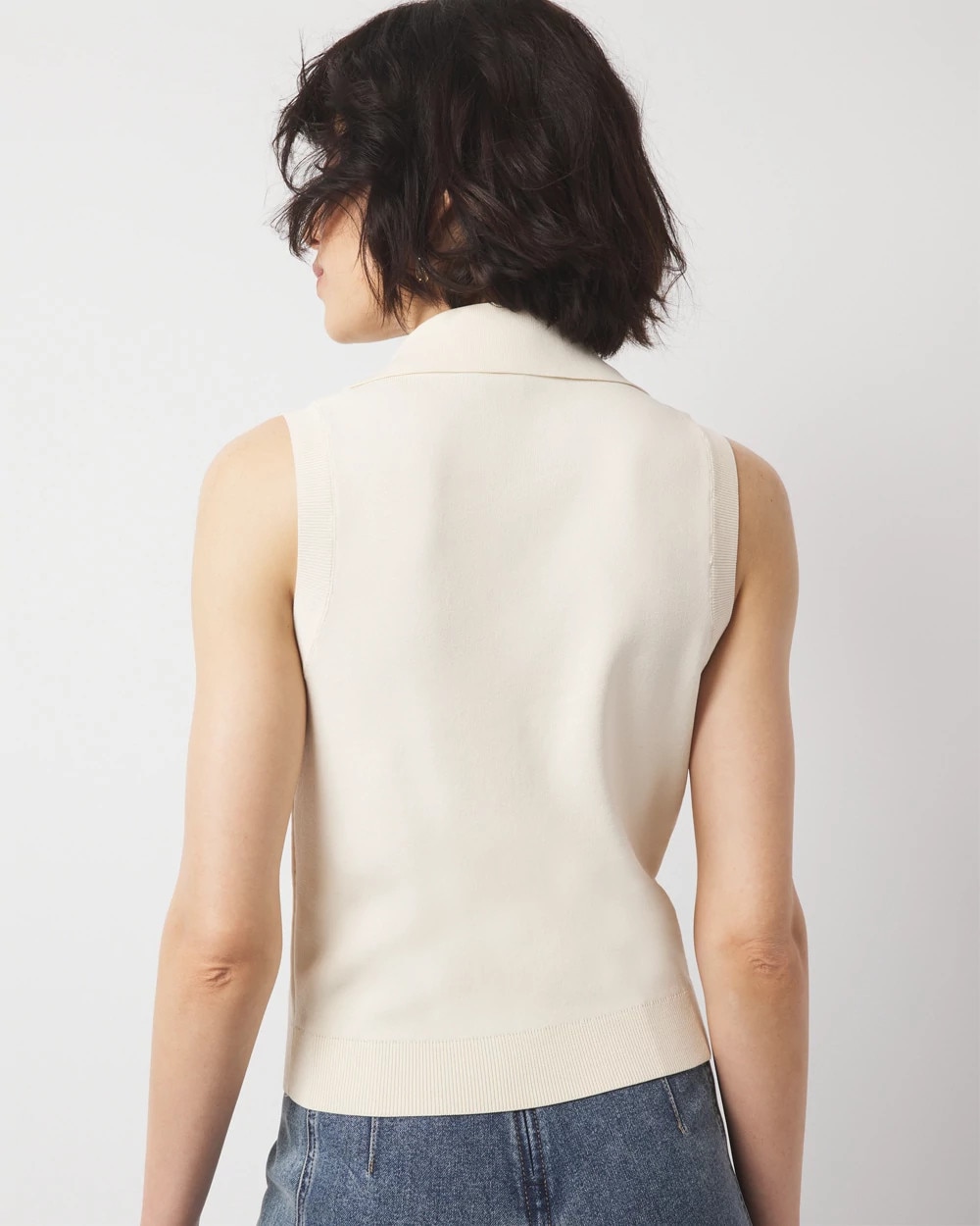 Three soft gold toggle buttons add a touch of novelty to this very polished sweater vest. Contrast piping and a collar also level up the style. Wear on its own as a tank top with pants and a blazer, then head to the office.