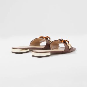 Made from supple faux leather, these flat sandals have a resin tortoise + gold chain ornament on the upper. A classic look you’ll wear for years to come. Pair with other pieces in our Tortoise + Links Collection, including jewelry.