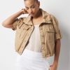 A beautiful, textured tweed bomber jacket with crest buttons, elastic cinched waist and cuffs and front pockets. A light layer that will easily move from summer to fall and add a dose of style to any look.