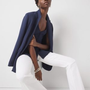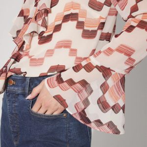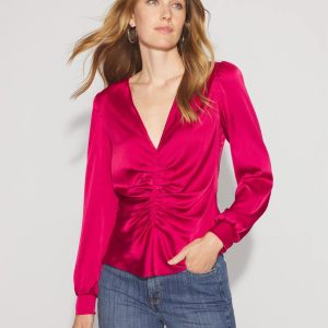 A fresh take on our fan favorite blouse, it features cascading ruffles down the front and a split cuff. An elegant addition to your work wardrobe, pair with your favorite WHBM® black pant.