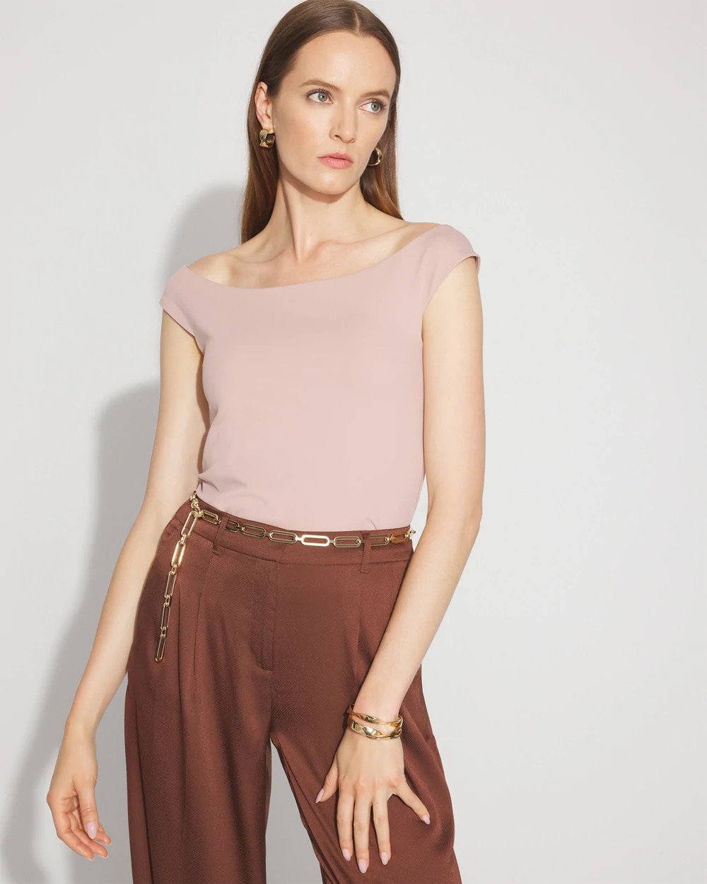 The latest piece in our WHBM FORME™ collection is this sleek top with a neckline that hits at the shoulder. Wear it with a blazer or on its own. Made from our WHBM FORME™ All Ways Stretch fabric that provides flexibility and movement and stretches in all directions.