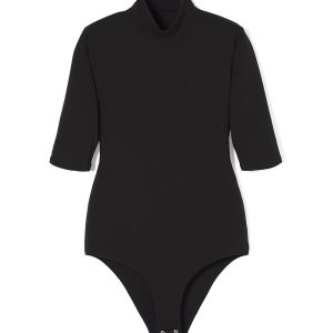 WHBM FORME™ All Ways Stretch provides flexibility and movement with fabric that stretches in all directions. Lightweight and double-layered, this bodysuit has elbow sleeves, a mock neck, snap closure, and full bottom coverage. Build your wardrobe on this classic silhouette.