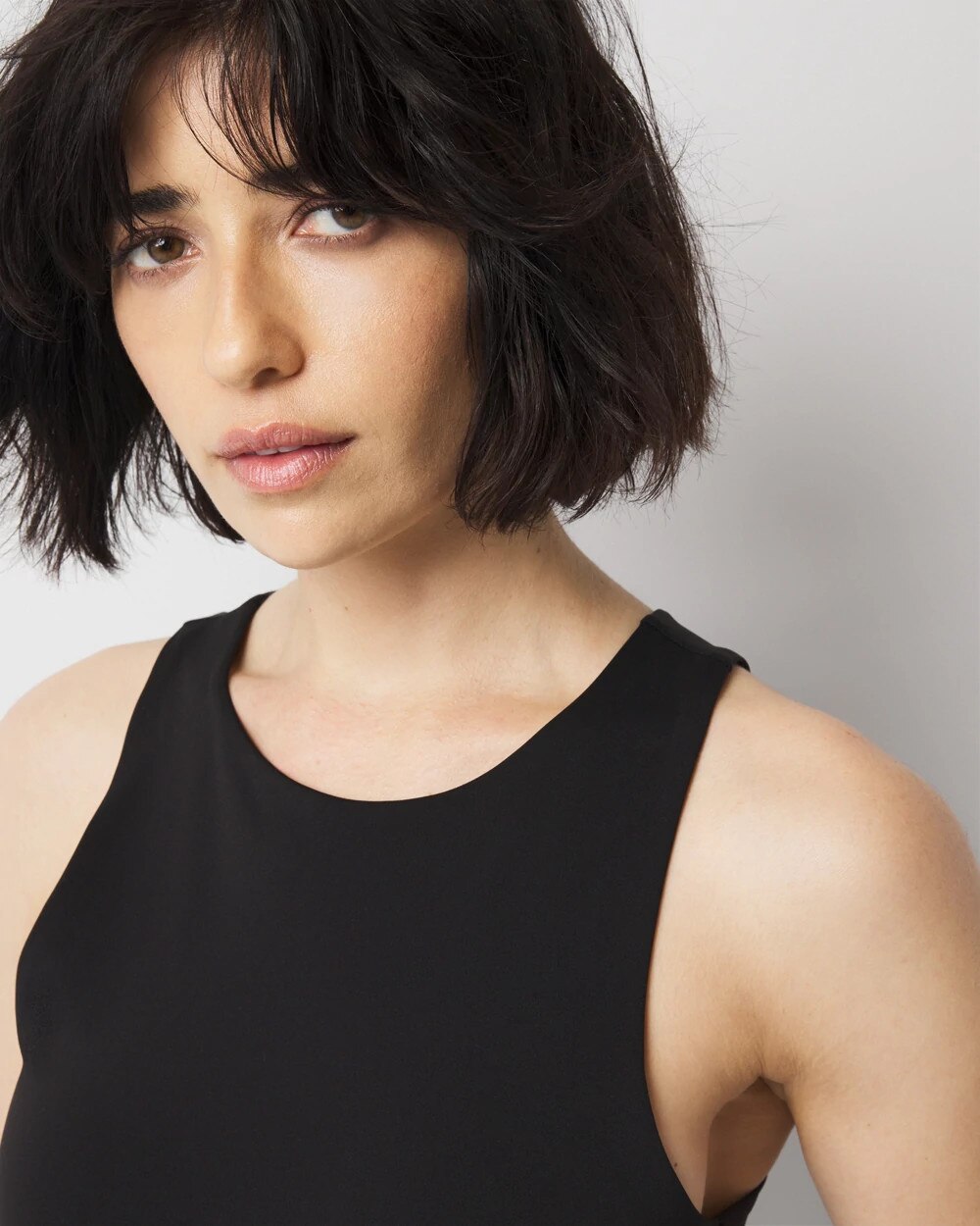 Fitted high crewneck bodysuit in our WHBM FORME™ All Ways stretch fabric that provides flexibility and movement with fabric that stretches in all directions. Designed with a racerback, cheeky bottom (not full coverage) and two-snap closure.