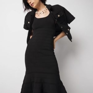 Meet our latest dress design in our WHBM FORME™ collection. This bodycon number has a flounce hem and sits just above the knee. An easy dress for layering under a blazer or jean jacket.