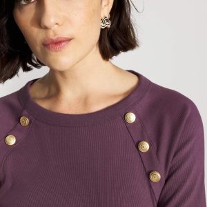 The perfect long-sleeve tee gets a style update with the addition of three gold shank buttons on each sleeve seam. Made with WHBM FORME™ Ribbed Stretch fabric that stretches and smooths your body, offering a flattering silhouette.