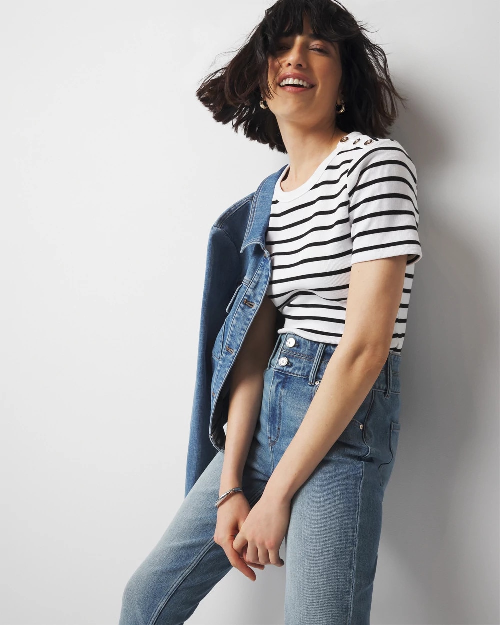 WHBM FORME™ Ribbed Stretch Button Shoulder Tee