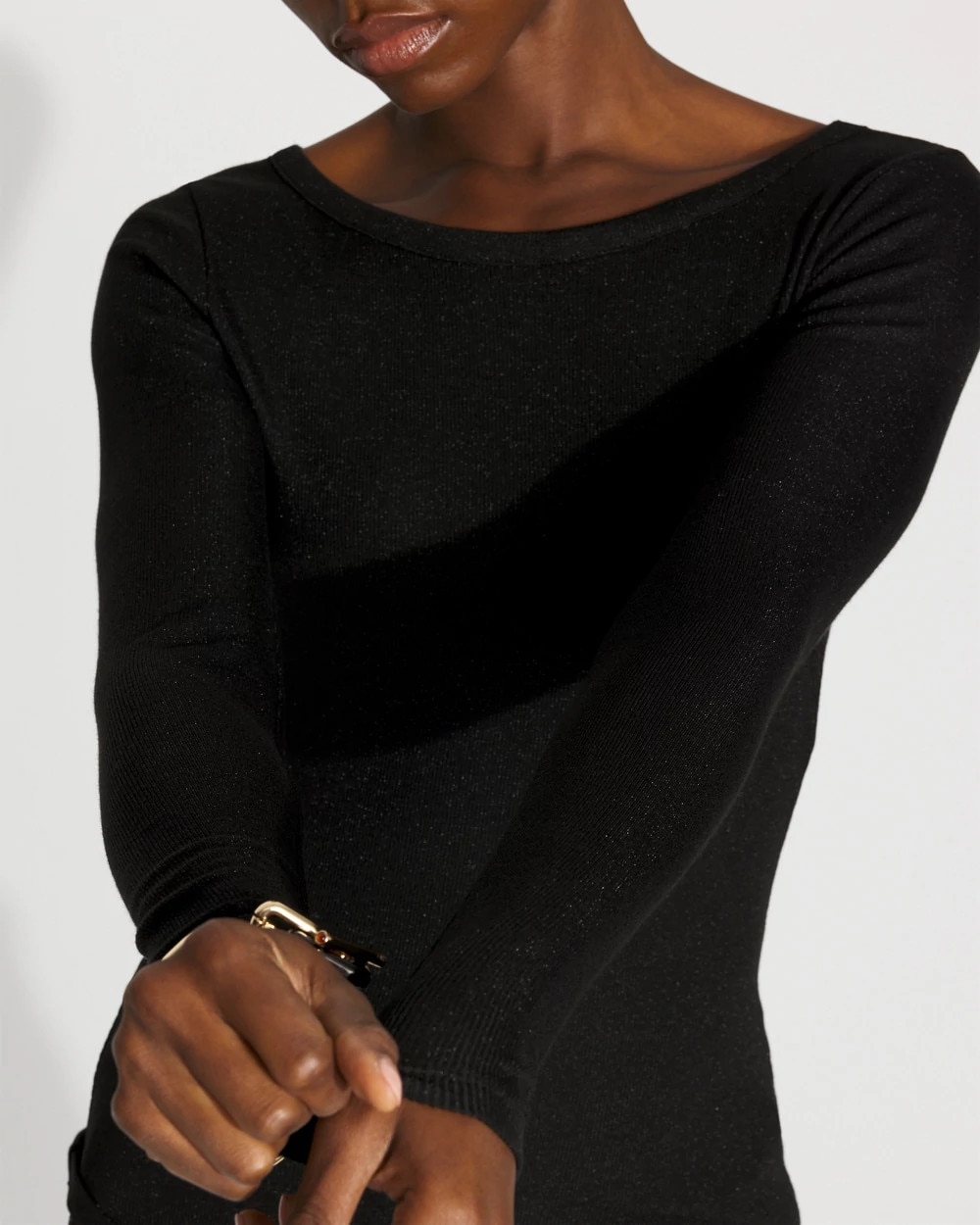 WHBM FORME™ Ribbed Stretch Metallic Long-Sleeve Tee