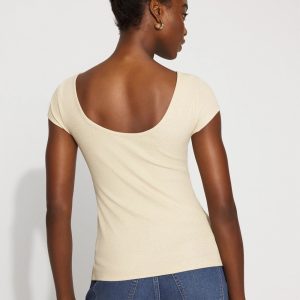 Brighten your day and your wardrobe with our latest WHBM FORME™ Ribbed Stretch top, made from a fabric with a metallic shine. A flattering scoop neckline is made more special by a deep scoop in back. Our ribbed fabric stretches and smooths your body, offering a flattering silhouette.