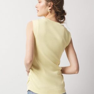 WHBM FORME™ Ribbed Stretch fabric stretches and smooths your body, offering a flattering silhouette. What also makes this crewneck tank stand apart is the ruching down the sides which gives it a hit of unexpected style. It’s finished with wide ribbed trim on neck and armholes. Wear it alone or layered under a jacket (but leave it unbuttoned so the ruching is visible.)