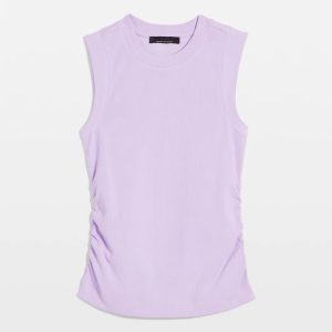 WHBM FORME™ Ribbed Stretch fabric stretches and smooths your body, offering a flattering silhouette. What also makes this crewneck tank stand apart is the ruching down the sides which gives it a hit of unexpected style. It’s finished with wide ribbed trim on neck and armholes. Wear it alone or layered under a jacket (but leave it unbuttoned so the ruching is visible.)
