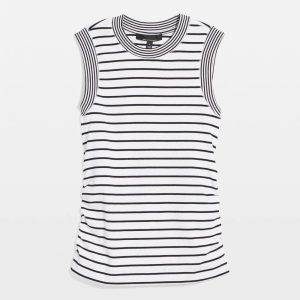 WHBM FORME™ Ribbed Stretch fabric stretches and smooths your body, offering a flattering silhouette. What also makes this crewneck tank stand apart is the ruching down the sides which gives it a hit of unexpected style. It’s finished with wide ribbed trim on neck and armholes. Wear it alone or layered under a jacket (but leave it unbuttoned so the ruching is visible.)