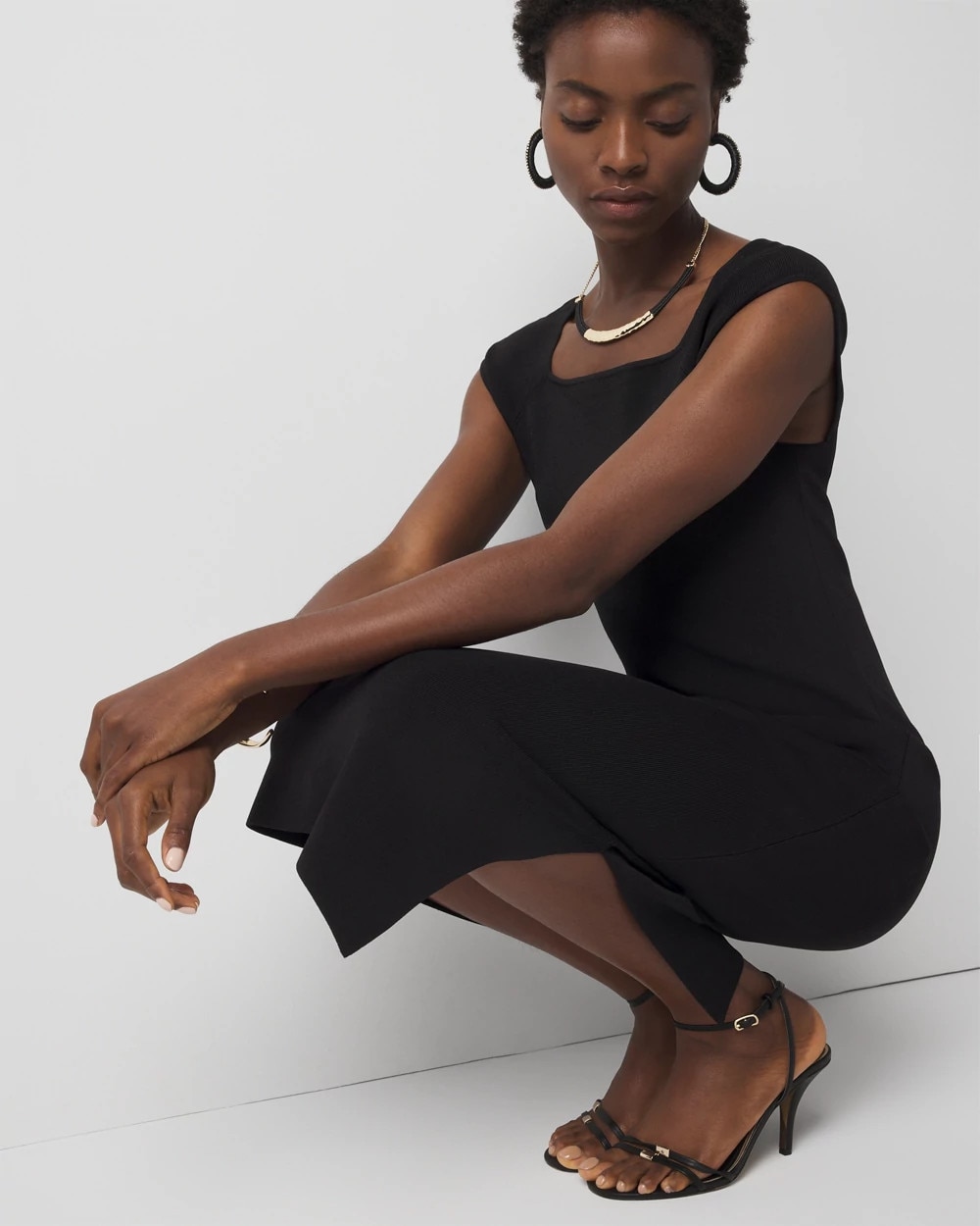 Show off your curves with our WHBM FORME™ Ribbed Stretch sweater dress. Designed with a square neckline, cap sleeve and a side slit, it’s made from our FORME™ ribbed fabric that stretches and smooths your body, offering a flattering silhouette.