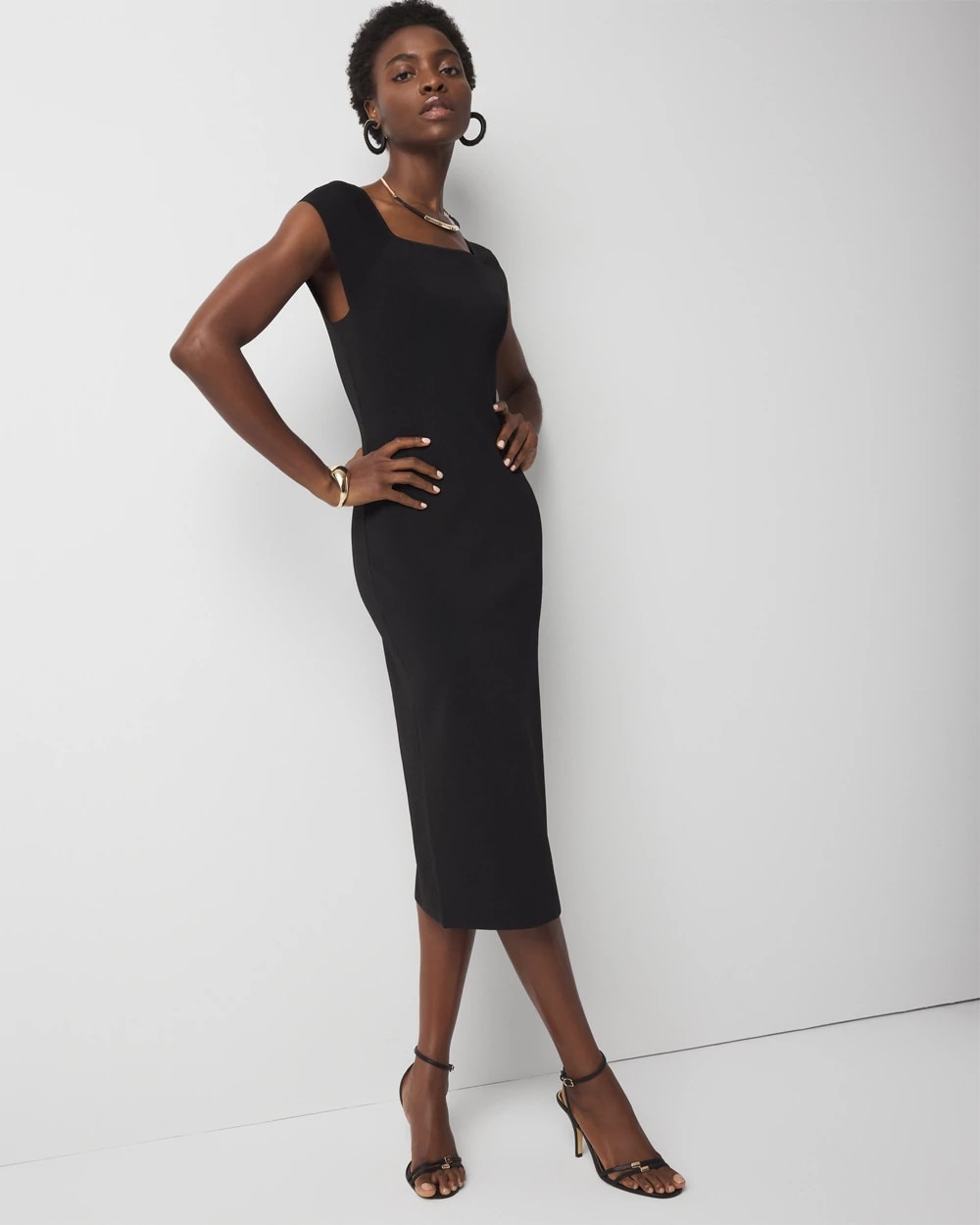 Show off your curves with our WHBM FORME™ Ribbed Stretch sweater dress. Designed with a square neckline, cap sleeve and a side slit, it’s made from our FORME™ ribbed fabric that stretches and smooths your body, offering a flattering silhouette.