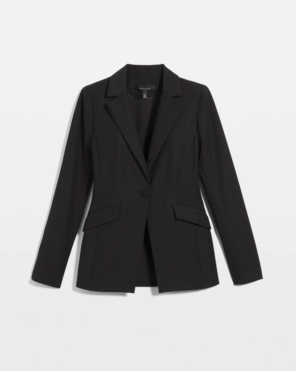 Every closet needs a power blazer. Our WHBM® One-Button Blazer is it. In a longer length with modern shoulders and a sleek, angled line that accentuates the waist to perfection and shaped by pleats in the back. Made with our Bella Comfort Stretch fabric. Match it back to the coordinating straight-leg pants for the full look.