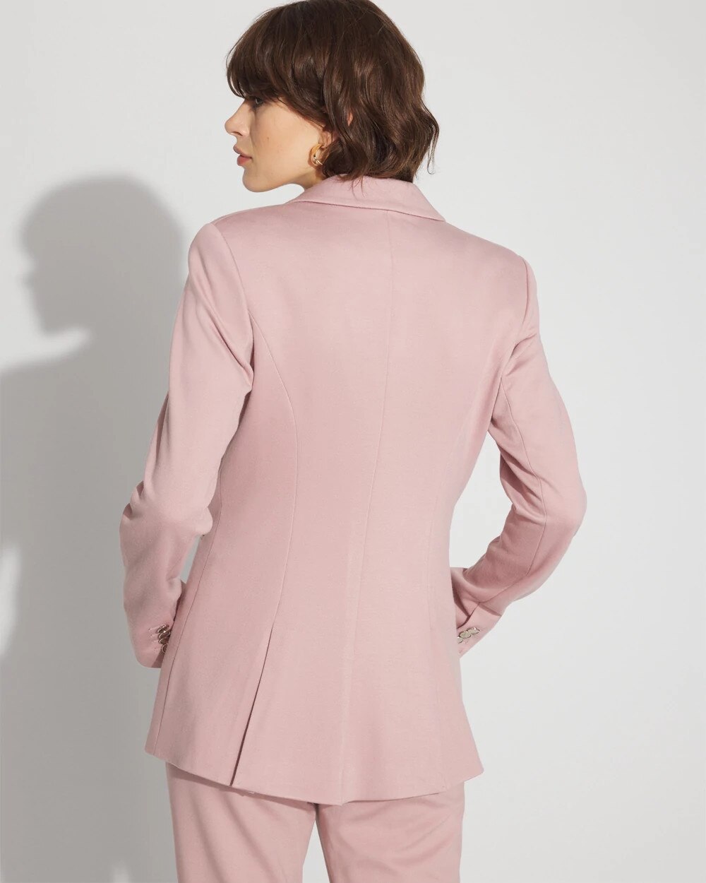 Our new WHBM® Two-Button Blazer has a longer length, front welt pockets and seaming details to shape you. Two silver hammered buttons in front add shine, while the functional button cuffs allow you to roll up the sleeves for styling options. Pair with our matching WHBM® Blake Bootcut Pant for a chic suit.